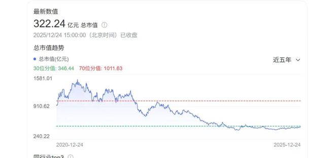业绩波动直接反映在股价上。2021 年 6 月,东方雨虹市值曾达到 1503.03 亿元的峰值,截至目前已蒸发超 1100 亿元,最新市值约 322.24 亿元,跌幅超78%。