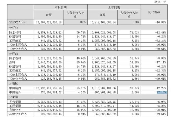 面对国内市场的困境,东方雨虹将突围的希望寄托在了海外市场,甚至在财报中称“海外优先,加速推动全球布局”。