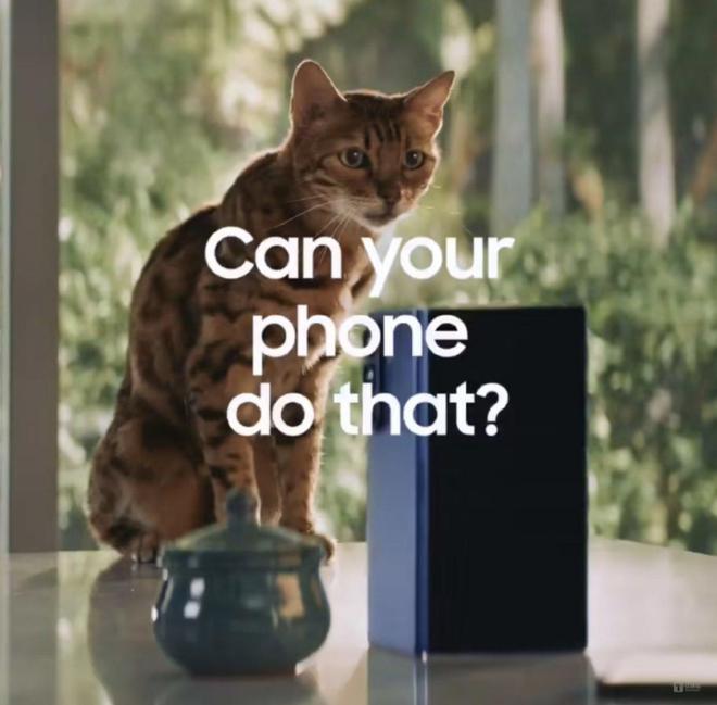 日前,三星在一则Galaxy Z Fold7的广告中调侃了一下iPhone,“嘲笑”其无法稳定立在桌面上,而自家的折叠屏不仅可以稳固地竖放在桌面上,还能分屏双视频播放。