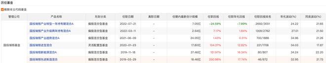 资料显示,施成目前在管6只基金产品,合计管理规模107.36亿元。从业绩来看,施成整体任职回报表现不错,但也呈现出业绩分化的特征。三只产品任职回报超过100%,国投瑞银先进制造混合任职回报率更是超过200%。另外三只产品业绩表现一般,其中国投瑞银产业转型一年持有期混合A任职回报率为-24.59%,在同类产品排名位于后10%行列。