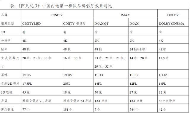 详细来说,《阿凡达3》选影院的几个简单指标: