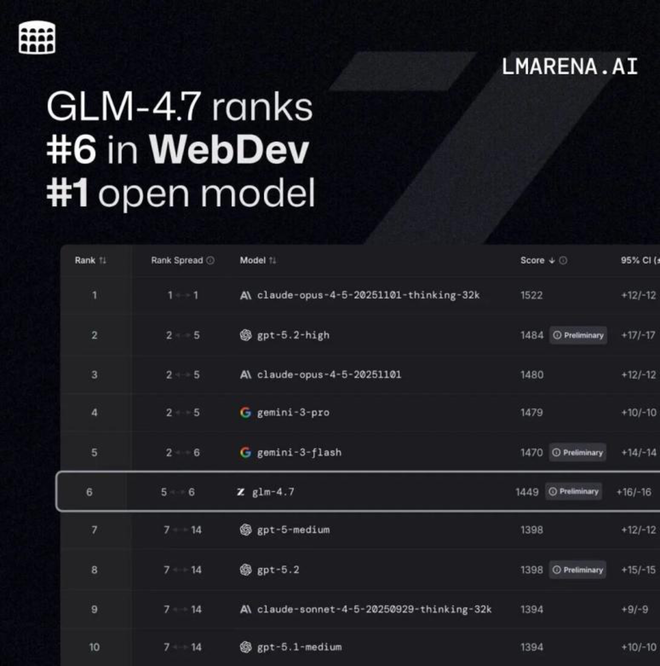 就在12月23日,GLM4.7上线,超过GPT-5.2。