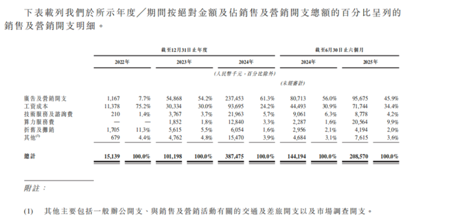 2022年、2023年、2024年及2025年上半年,智谱销售及营销开支分别达到0.15亿、1.012亿、3.875亿以及2.086亿元。