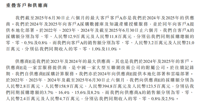 另一方面,智谱的大单存在“客户为虚,供应商为实”的嫌疑。在招股书中不少大客户同时是智谱的大供应商,但客户A、P、Q都出现了采购额超过销售额的情况,比如,智谱在2022年至2025年上半年期间,向最大客户A销售了2.42亿元,但却向客户采购了2.47亿元。