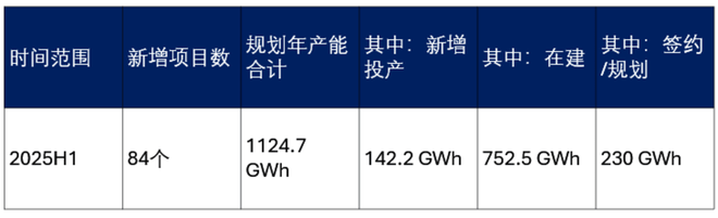 新华社旗下经济参考报援引CESA产业数据库,仅2025年上半年,国内新增储能锂电制造项目84个,规划年产能合计1124.7GWh;其中新增投产142.2GWh、在建752.5GWh、签约/规划230GWh。