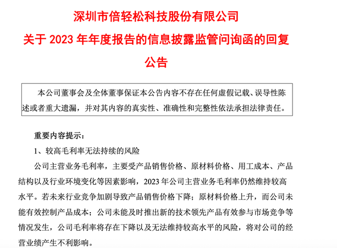 近年来,倍轻松在信息披露方面已屡次受到监管关注。2022年至2024年年报及2025年半年报,公司均曾收到上海证券交易所发出的信息披露监管问询函。
