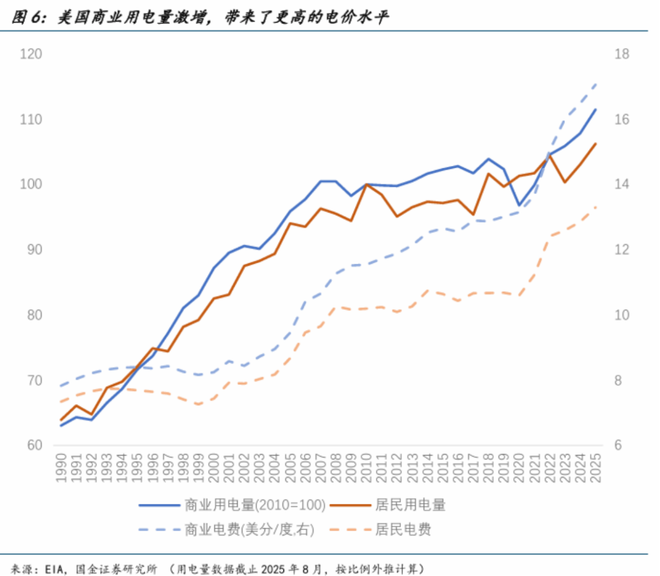 其次是生存成本的系统性上升。AI等新经济的扩张带来了外溢成本,由于数据中心等耗电量激增,美国商业平均电价较2019年上涨约30%。这类基础成本的上扬,最终会传导至全社会,尤其对预算拮据的普通家庭构成沉重压力。