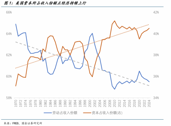 首先是就业市场的挤压。国金证券报告分析指出,美国劳动力市场呈现“供需双弱”格局,失业率呈上升趋势。同时,AI等技术进步在替代部分传统岗位,加剧了中低收入者的就业不稳定性。这一判断与财通证券报告中“无就业的复苏”观点相互印证。