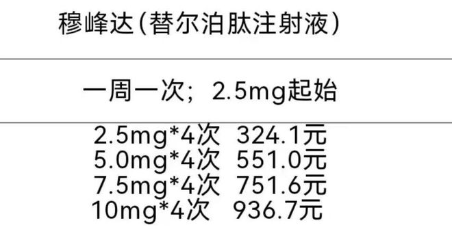 截至目前,国家医保局并未公布谈判价格结果。但在多位内分泌科、代谢科医生的社交媒体中,流传出2026年1月1日后替尔泊肽将执行的新价格,同比大幅下降。不同用量的月费价格(每月4次)分别为:324.1元(2.5mg)、551元(5mg)、751.6元(7.5mg)和936.7元(10mg)。