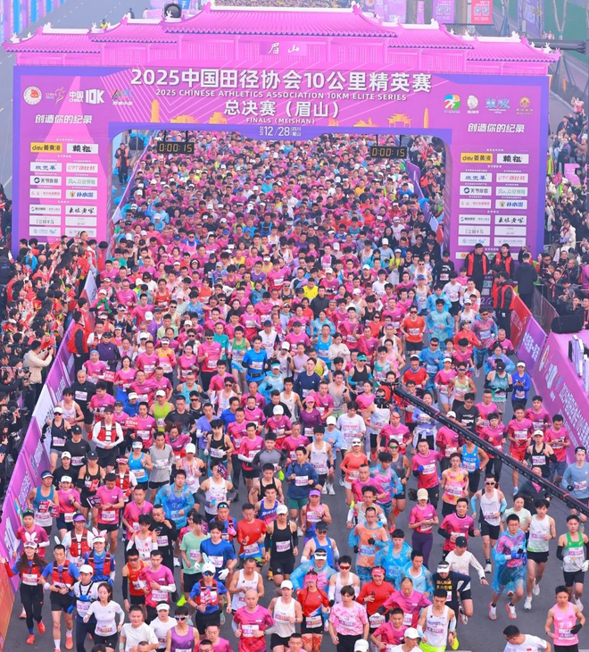 12月28日,2025中国田径协会10公里精英赛总决赛眉山站鸣枪开跑,来自全国各地的跑者齐聚一堂,在东坡故里同场竞技。本次赛事由中国田径协会、眉山市人民政府主办,四川省田径协会、眉山市教育和体育局承办。