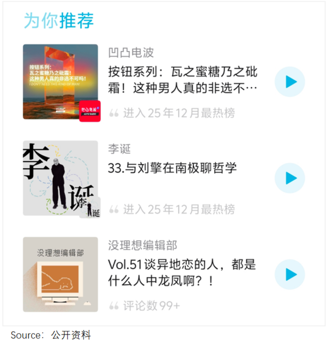一旦这些强势个人IP或专业品牌空降,听众的注意力便会被瞬间虹吸——这一点,从平台推荐榜长期被少数熟悉面孔“霸榜”就可见一斑。