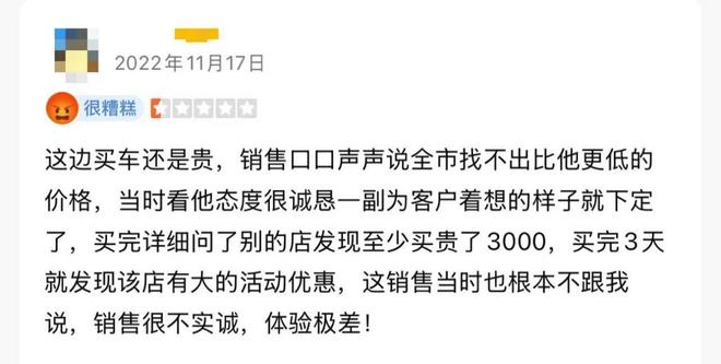 不过,第三方点评平台上却呈现不一样的图景。部分用户在安利捷的主页下留言表示,自己买车时的经历并不愉快,包括销售事先承诺低价但买完3天便发现有极大活动优惠,买卡罗拉车型被“套路”一万多,保养时被蒙混添加不需要的项目等。