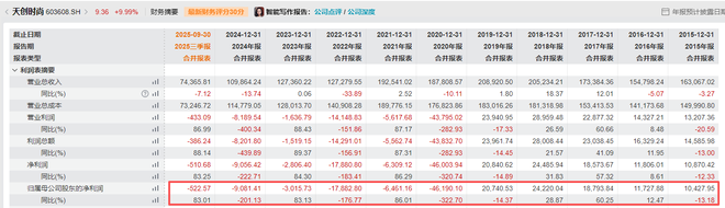 但从最新业绩数据来看,这份努力的成效并未完全显现。2025年前三季度,天创时尚实现营业收入7.44亿元,同比下降7.12%;但亏损大幅收窄,归母净利润由去年同期的-3.08亿元改善至-0.52亿元,经营效率显著提升。同时,经营活动现金流净额同比大增397.70%,经营性造血功能恢复。
