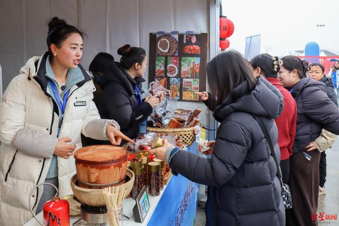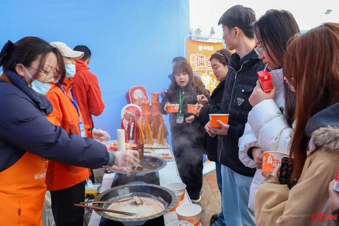 活动现场精心设置主题集市、欢乐游园、花卉打卡三大区域,打造集甜蜜消费、品牌体验、产品销售、假日集市于一体的沉浸式乡村微度假节庆活动。“主题集市区”吸引天味、新华西、鹃城郫县豆瓣等50余家企业参与,集中呈现郫都特色产品,展示“郫都造”工业精品。另外,团结街道的清全粉条、红光街道的美宁肥牛火锅、德源街道的小微盆景、郫高园区的杨国福麻辣烫等也纷纷亮相。现场还有非遗文创展,蜀绣、银花丝技艺等为“村糖会”增添“非遗味”。