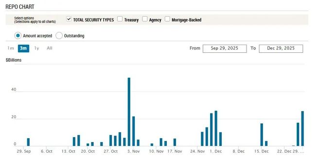 然而,传闻中所说的美联储被迫通过紧急隔夜回购机制向银行系统注入340亿美元,却“无迹可查”——截至本周一,纽约联储依然未对此发表过任何声明。从官网中能查询到的信息看,周一的隔夜回购机制动用规模为259亿美元。而上周五的172.5亿美元操作都是发生在当天上午,下午的操作需求为零(几乎可以认为与白银市场关联度不大)。