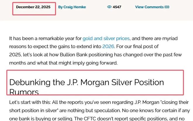 而从过去一个月的媒体报道和社交平台信息看,类似摩根大通“平仓白银空头头寸”的说法,其实早在12月初就有了——一直到上周也依然有坊间的信奉者。