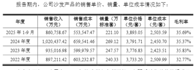 此外,作为顾家家居的拳头产品,今年前三个季度,公司卖出221.1万标准套沙发(为规范核算标准,顾家家居将不同产品按照一定标准折算成“标准套”进行核算),标准套的平均单价为3893.05元,较直播间的3471.4元高12.15%。