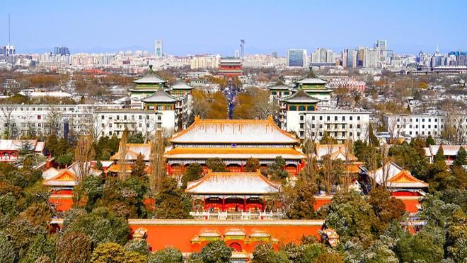 北京雪后初霁,中轴线建筑群银装素裹。视觉中国 图
