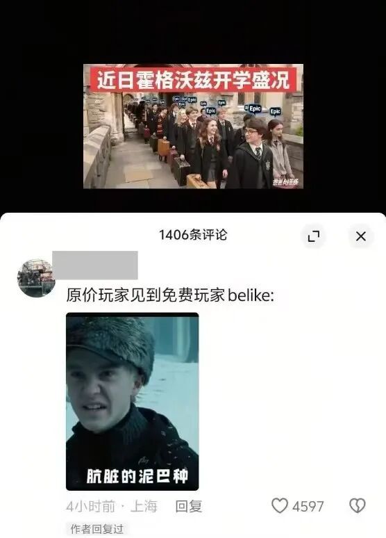 最常见的便是老学长们破防,变身IP故事中的马尔福,开始集体「霸凌」新玩家,大骂他们都是「泥巴种」。