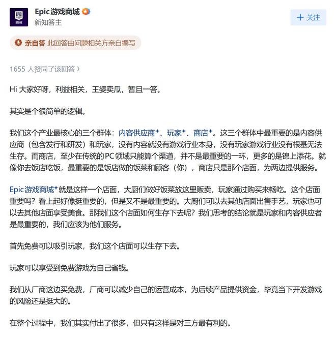Epic知乎回答