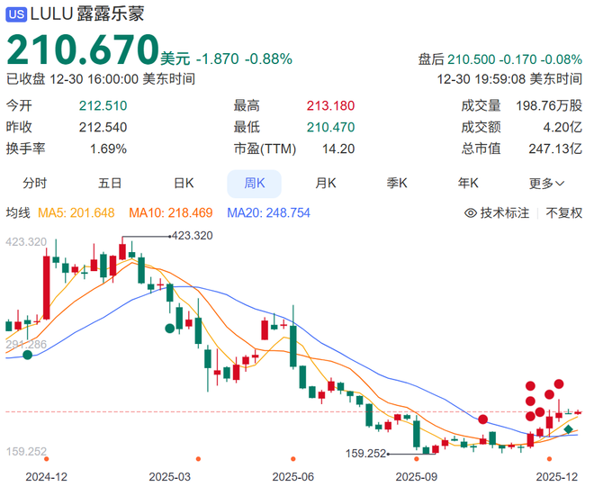 更惨的是,今年以来Lululemon的股价已经跌了超46%,市值直接蒸发了超200亿美元。
