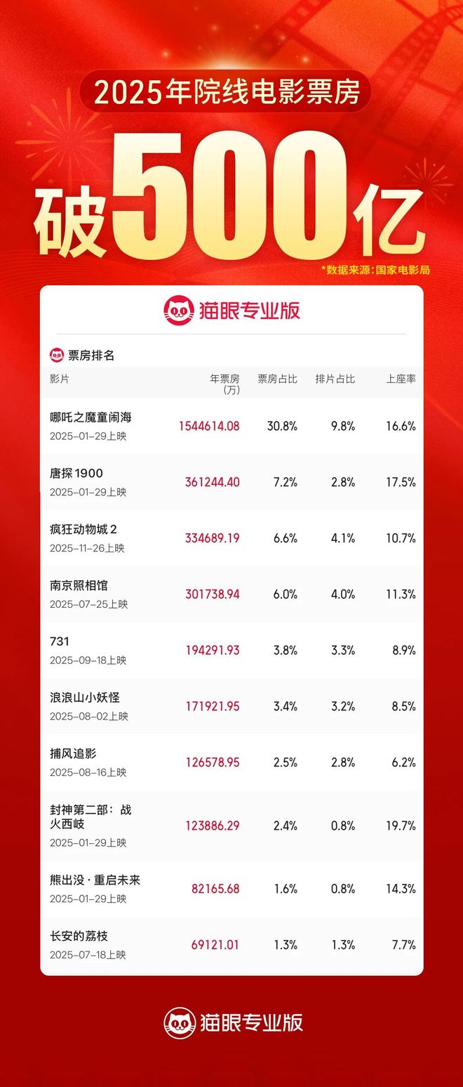 2025年中国电影总票房已突破500亿大关,其中动画电影贡献了近一半的惊人份额。