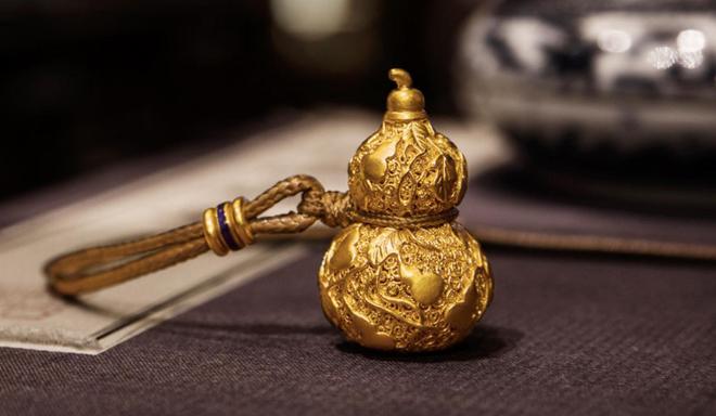 产品方面直接搬出以明代"凤冠霞帔坠子"为原型的金龙香囊,取型于清代惠逸公的逸公壶,还有微型转经筒吊坠、金龙金凤、万年如意、麦穗貔貅、清竹金笔……数不胜数。