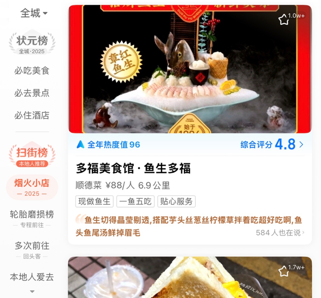 根据官方资料,在高德扫街榜,用户会看到对应不同类型行为的排行榜,有体现远距离专程前往的"轮胎磨损榜",有体现多次前往的"回头客榜",还有本地人爱去、城市特色体验、高分烟火小店等多类排名,每个分类都会根据动态数据每日更新。