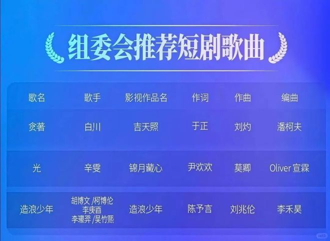 9月,在厦门举办的2025中国数字音乐产业大会上,短剧歌曲首次纳入专业评价体系,短剧《吉天照》主题曲《贪著》、短剧《锦月藏心》主题曲《光》、短剧《造浪少年》主题曲《造浪少年》,获组委会推荐短剧歌曲。