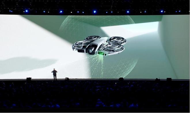 △老罗现场演示影翎A1的飞行拍摄,图片:发布会现场