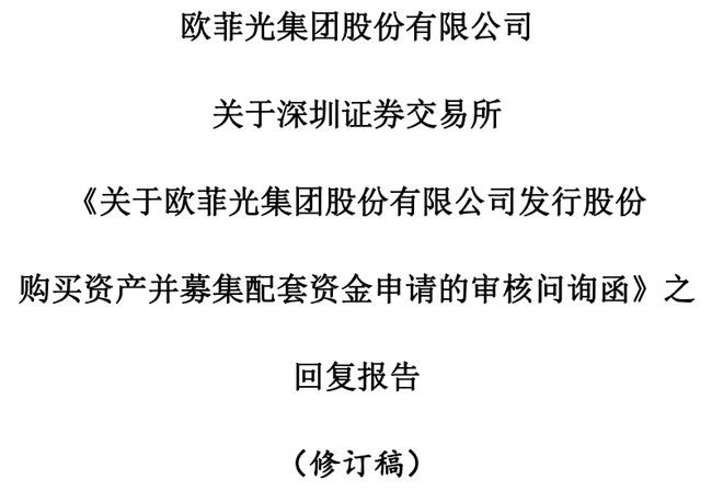 1月4日晚间,欧菲光(002456)发布关于深交所《关于欧菲光集团股份有限公司发行股份购买资产并募集配套资金申请的审核问询函》之回复报告(修订稿)(以下简称回复)。