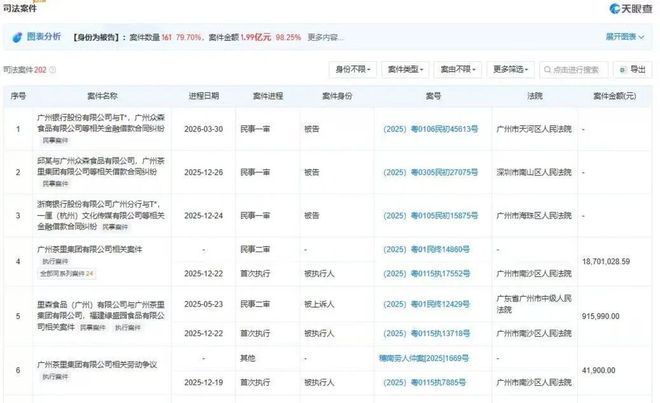 广州茶里集团有限公司相关法律诉讼 图片来源:天眼查