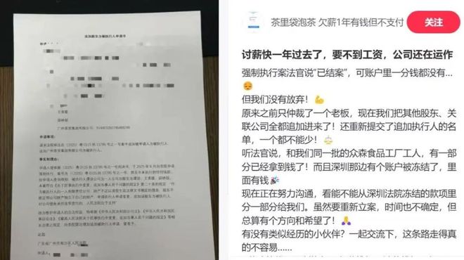 2024年11月,CHALI员工讨薪事件登上社交平台热搜,如今过去一年多,讨薪员工仍在等待,广州茶里集团有限公司的法律诉讼却越积越多。