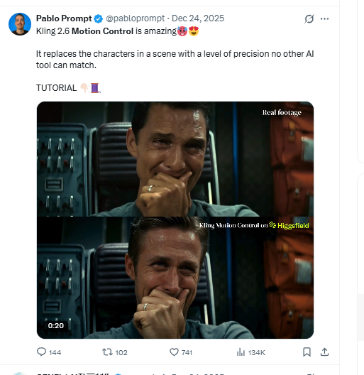 快手大涨12%,可灵海外出圈,Motion Control玩法风靡,刷新社交媒体潮流新纪元