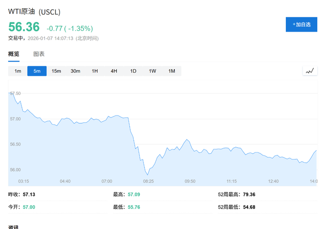 受该消息影响,国际原油价格应声下跌。市场普遍认为,随着美国接管委内瑞拉局势,该国石油产量进一步崩溃的风险降低,且短期内对美出口将大幅增加,从而缓解了供应端的紧张情绪。