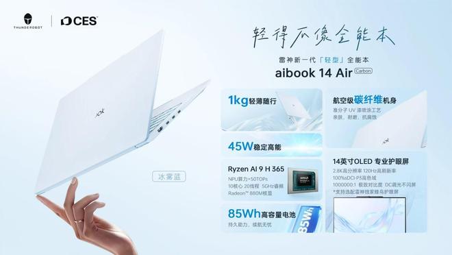 同步发布的雷神aibook14 Air Carbon为雷神2026年轻薄本品类的核心旗舰之作。