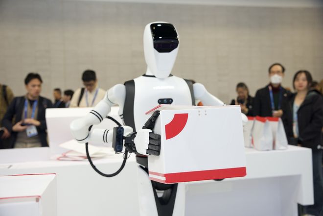 全球首款AI机器人配送小哥亮相速腾聚创展会,自主打包拆包操作现场演示