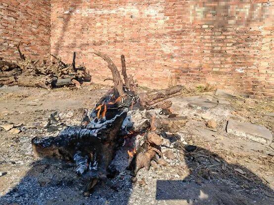 在保定竞秀区一村庄,凤凰网《风暴眼》走进一户农民家中,看到院门里堆着半米高的棒子芯,旁边是已经燃尽的一摊灰烬。