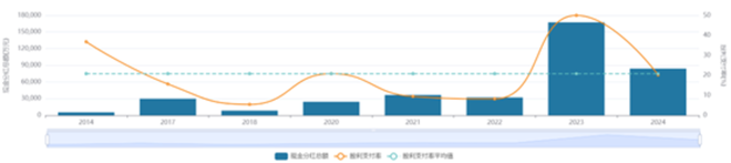 历史上,华友钴业的股利支付率表现并不稳定。2021年及2022年,支付率仅维持在较低的两成左右,2023年与2024年亦有所反复。