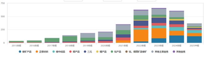 这一过程中,华友钴业形成了“总部在浙江、资源在境外、制造基地在中国、市场在全球”的空间布局。25年半年报显示,海外与中国收入占比为64:36。