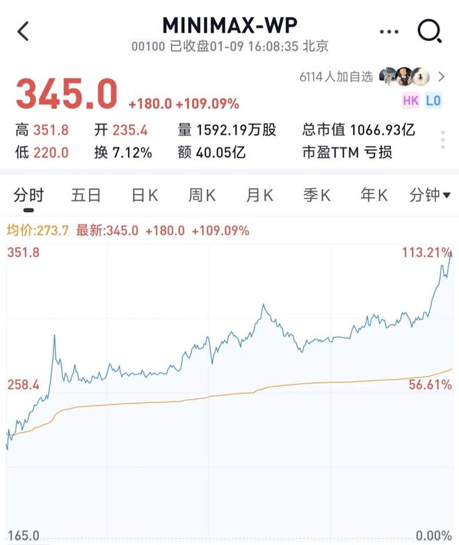 1月9日,MiniMax正式登陆港交所。交易数据显示,MiniMax开盘后涨幅持续拉升,最终收涨109%,市值突破千亿港元大关。