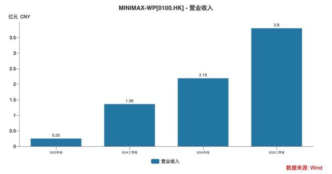 2025年前九个月公司营收达到了5344万美元,同比增长174.7%。截至2025年9月30日,MiniMax已有超过200个国家及地区的逾2.12亿名个人用户,其中海外市场收入贡献占比超70%。