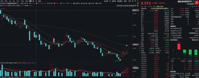 港股市场表现更为强劲,港股通创新药ETF(159570)报收0.553元/股,涨0.91%,成交金额5.72亿元,年内累计涨幅达11.04%;晶泰控股今日领涨10.48%,昭珩新药、博安生物、君实生物跟涨超5%。