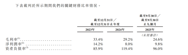 偿债能力方面,高杠杆风险依然悬顶。尽管2025年前三季度的资产负债率较2024年全年的119.4%回落至96%,但仍处于绝对高位,财务安全垫薄弱。