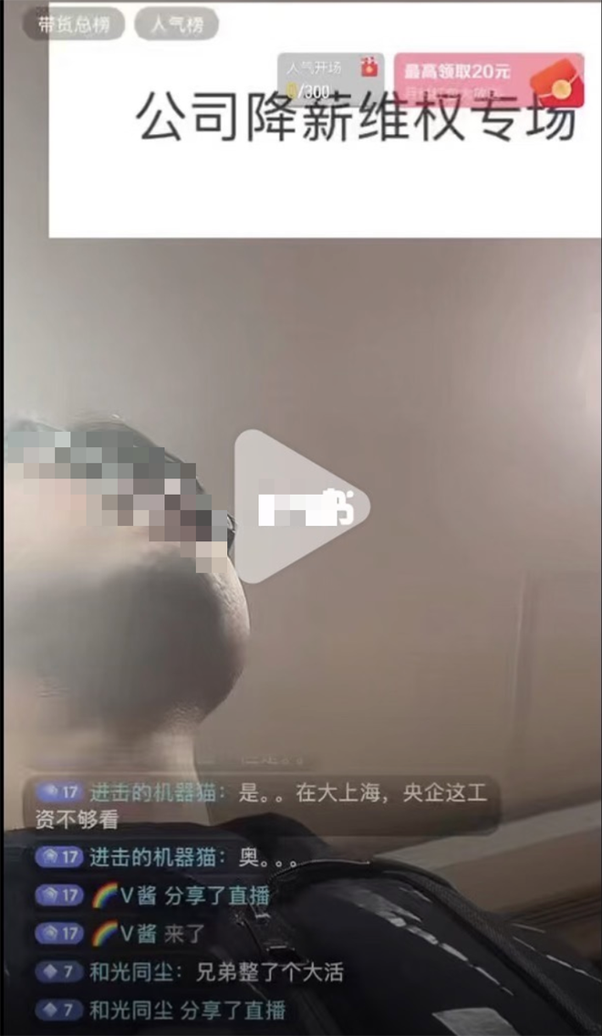 近日,一名自称为申银万国期货的员工在社交平台上开设“公司降薪维权专场”直播引发关注。直播画面中,该公司总经理疑似将维权员工推倒。凤凰网财经《公司研究院》联系到开直播的当事人赵峰(化名),他向我们还原了整个冲突始末。