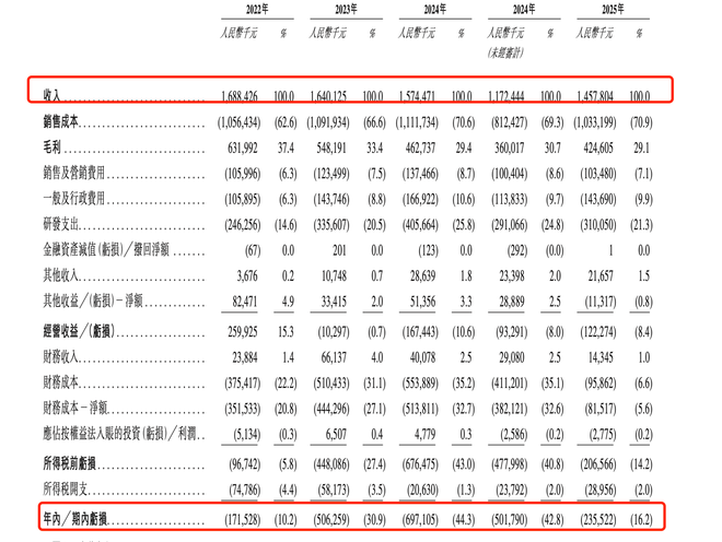 业绩方面,芯迈半导体尚未盈利。招股书显示,2022年、2023年、2024年及2025年前三季度,芯迈半导体实现收入分别约为16.88亿元、16.4亿元、15.74亿元、14.58亿元,其中2022年至2024年营收呈现连续下滑态势;年内亏损分别为1.72亿元、5.06亿元、6.97亿元、2.36亿元,三年多累计亏损16.11亿元。