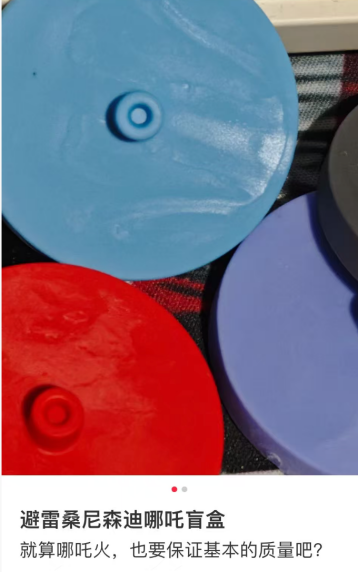 还有消费者晒出购买的哪吒盲盒,图片显示其底部颜色不均,质疑桑尼森迪:“就算哪吒火,也要保证基本的质量吧?” 对此,有网友认为低价情有可原:“这个价格可以了,泡泡玛特是它价格的7倍质量自然好。” 但这样的声音也遭到消费者反驳:“商品最基本的质量要有,别拿低价当挡箭牌。”