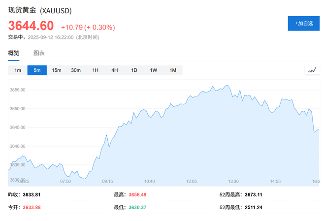 近期,黄金市场已经表现出强劲的上涨势头,在本周二已创下每盎司3673.95美元的历史新高,年内累计涨幅超过39%。截至发稿,现货黄金上涨0.3%至3644美元/盎司。