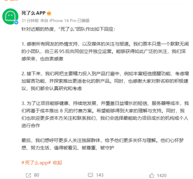 近日,一款名为“死了么”的App在社交媒体爆火,用户量激增50倍,登顶苹果付费榜。
