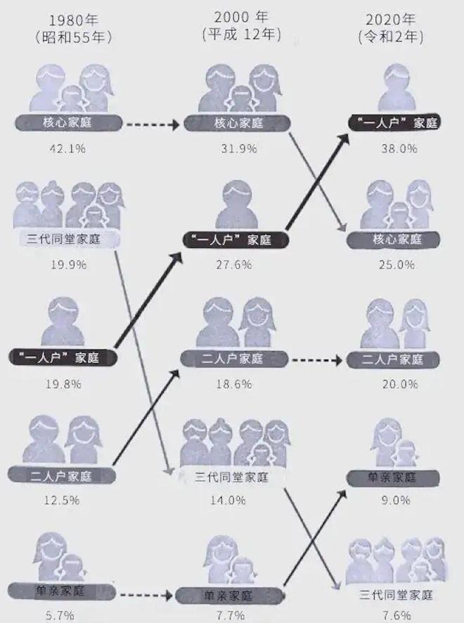 随着年轻人涌向城市,传统的多代同堂家庭结构瓦解,至2015年,独居家庭比例已飙升至34.6%以上。